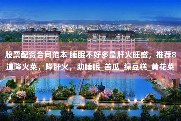 股票配资合同范本 睡眠不好多是肝火旺盛,推荐8道降火菜,降肝火,助睡眠_苦瓜_绿豆糕_黄花菜